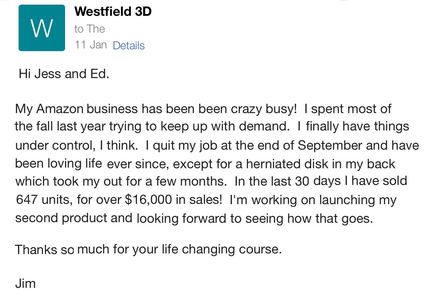 Within the first month of Jim launching his first product, he hit a modest $1500 worth of sales.