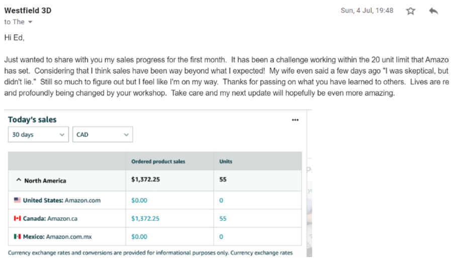 Within the first 3 weeks of starting the program, amazingly Peter had already launched his first product. In just the first 72 hours of launch he’d made £2300 (approx $2800) worth of sales*.