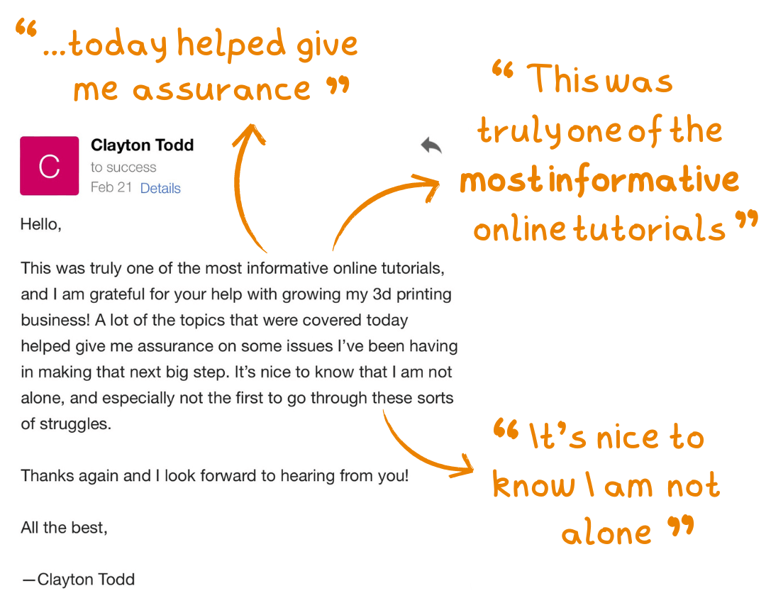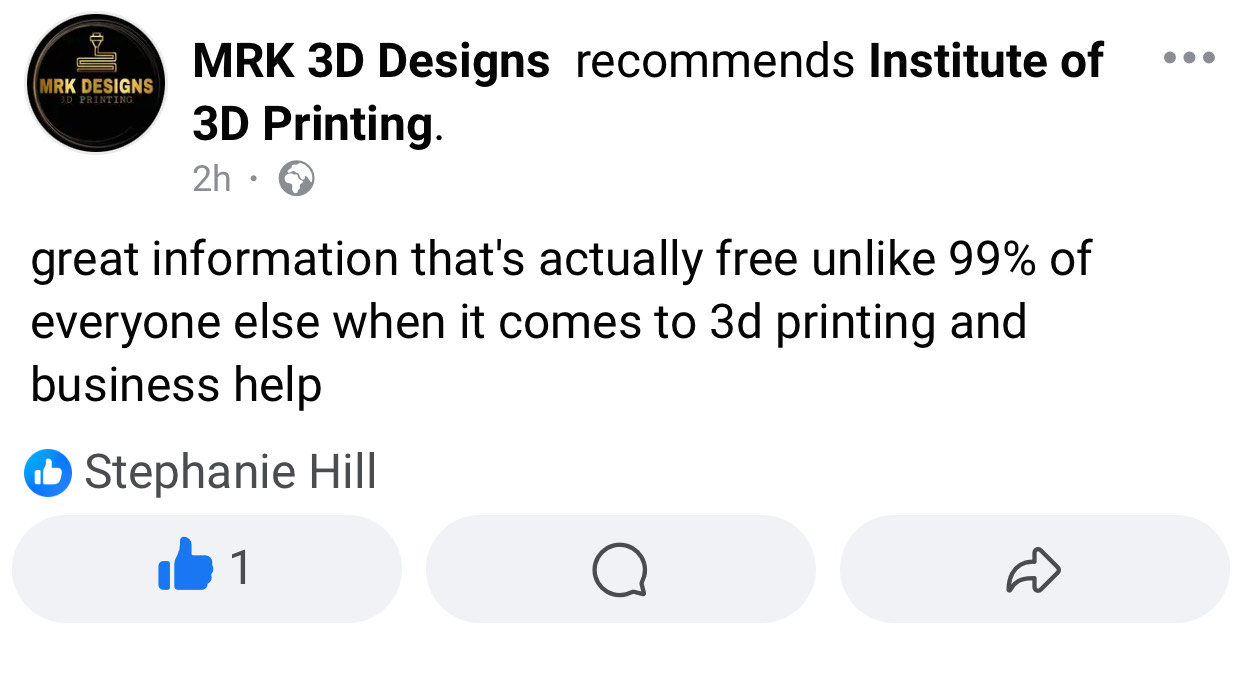 Whether you're currently selling your prints or offering your printing services, this unique training will transform how you see your 3D printing business and reveal your next steps to success.