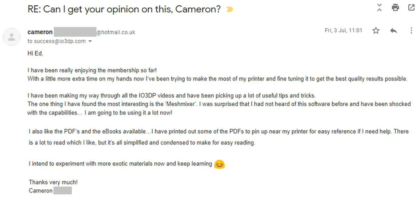 With The Institute of 3D Printing Training Suite membership, you get unlimited access to their comprehensive tech support. All you have to do is ask them what’s up, and they’ll guide you with jargon-free, easy to follow answers. Best bit? You can keep asking them as many simple or complex questions as you like, as often as you like.